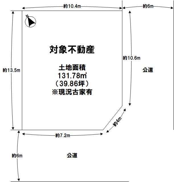 | 道路 | 南西:道路幅員 約6m、南東:道路幅員 約6m |