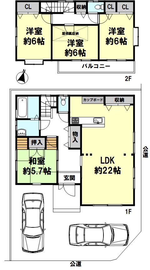| 道路 | 南東:道路幅員 約6.1m、北東:道路幅員 約5.7m |