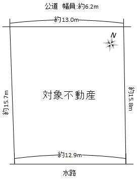 接道間口:約13.0m、前面道路公道